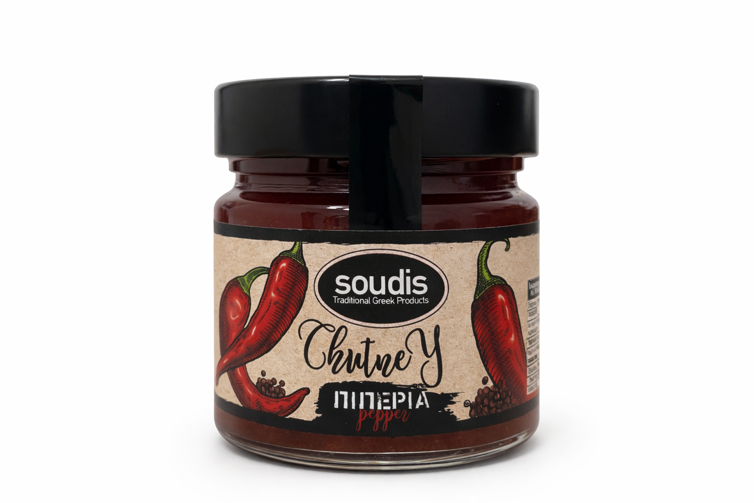 Αρωματικό chutney πιπεριάς με ισορροπημένη γλυκόξινη γεύση και διακριτική ένταση. Συνοδεύει υπέροχα τυριά, κρεατικά, πλατό αλλαντικών και ψητά λαχανικά.